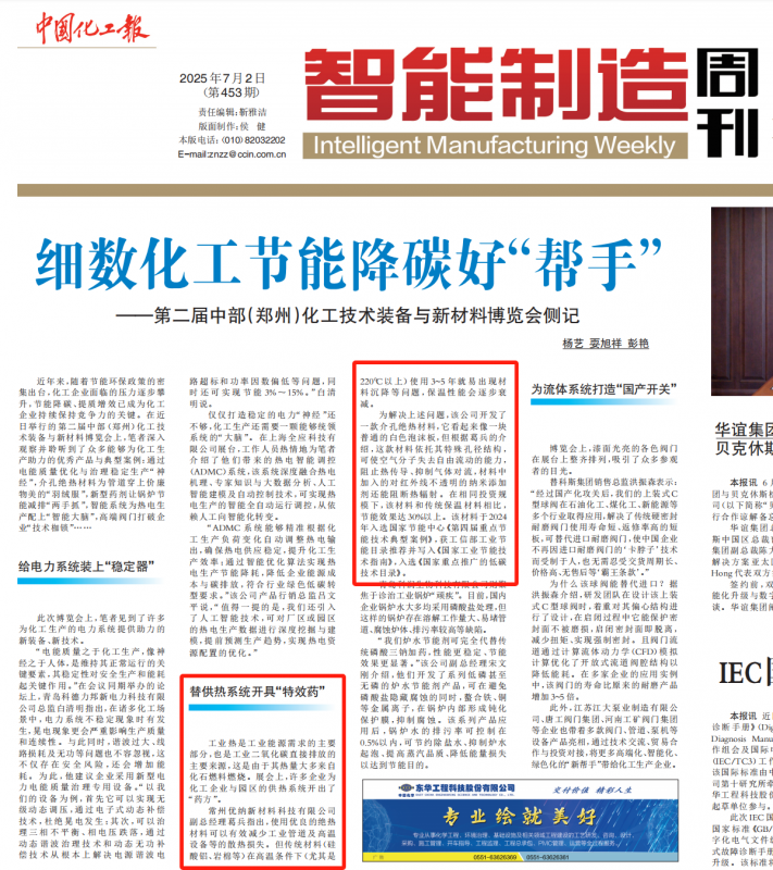 《中國化工報》:優(yōu)納新材替供熱系統開具“特效藥”